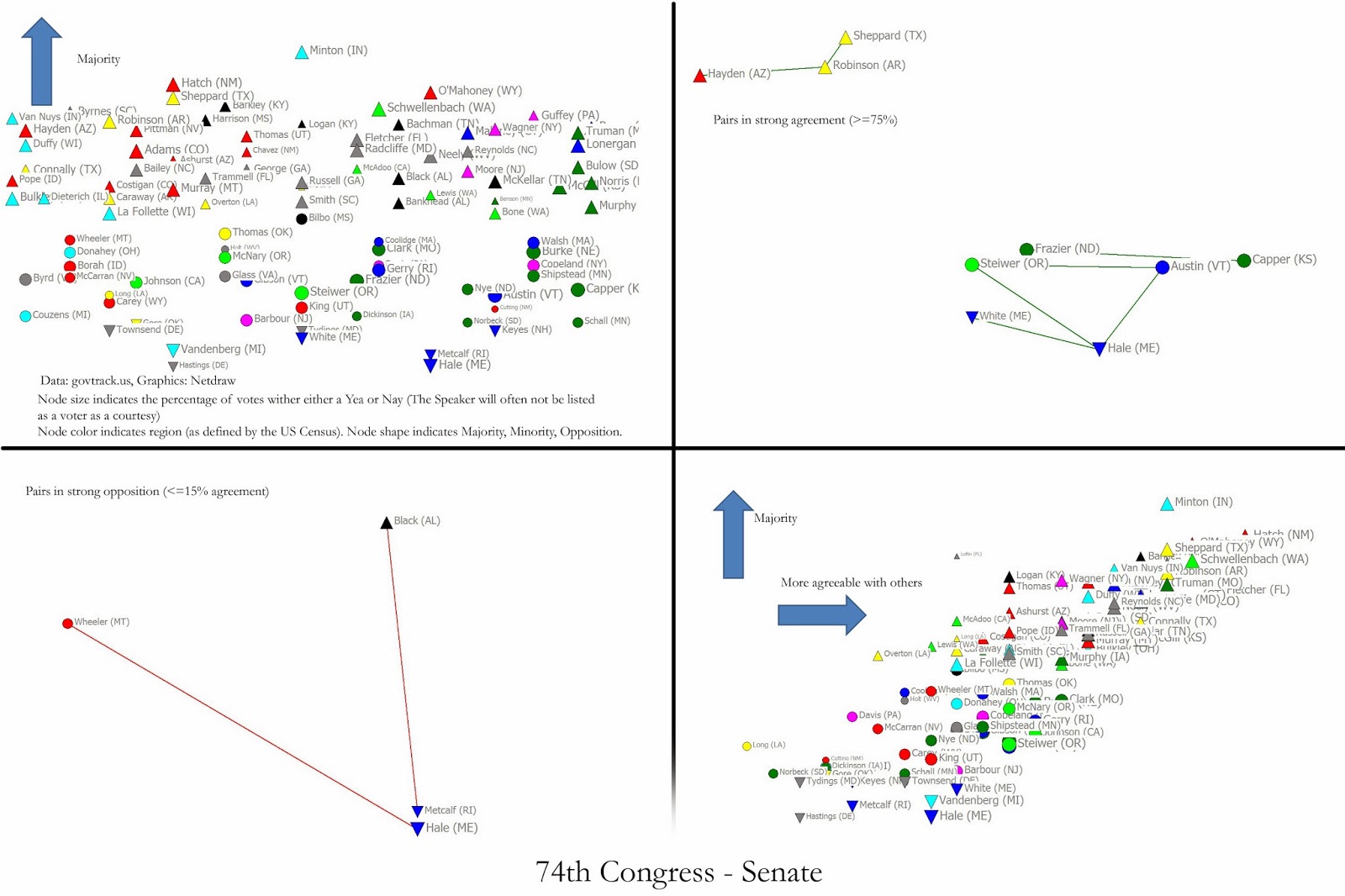 Minton (IN)[187, 68.98, 51.04%], Hatch (NM)[191, 60.73, 54.17%], O'Mahoney (WY)[189, 58.73, 52.08%], Sheppard (TX)[190, 57.37, 51.04%], Loftin (FL)[18, 55.56, 42.71%], Barkley (KY)[185, 55.14, 50%], Schwellenbach (WA)[191, 54.45, 52.08%], Byrnes (SC)[187, 53.48, 51.04%], Guffey (PA)[185, 52.43, 51.04%], Van Nuys (IN)[186, 52.15, 48.96%], Harrison (MS)[184, 51.63, 50%], Robinson (AR)[189, 51.32, 51.04%], Logan (KY)[183, 50.27, 44.79%], Bachman (TN)[189, 50.26, 50%], Brown (NH)[187, 49.73, 50%], Wagner (NY)[184, 49.46, 46.88%], Hayden (AZ)[192, 48.96, 50%], Pittman (NV)[186, 48.92, 47.92%], Maloney (CT)[190, 48.42, 48.96%], Truman (MO)[188, 48.4, 51.04%], Thomas (UT)[177, 47.46, 44.79%], Fletcher (FL)[185, 46.49, 53.13%], Lonergan (CT)[192, 45.31, 50%], Duffy (WI)[181, 45.3, 47.92%], Radcliffe (MD)[191, 43.98, 50%], Adams (CO)[190, 43.68, 51.04%], Reynolds (NC)[179, 43.58, 48.96%], Chavez (NM)[124, 43.55, 50%], Neely (WV)[191, 42.41, 48.96%], Ashurst (AZ)[190, 41.05, 44.79%], Bulow (SD)[192, 39.58, 47.92%], McAdoo (CA)[182, 39.01, 42.71%], Bailey (NC)[190, 38.95, 48.96%], George (GA)[183, 38.8, 46.88%], Connally (TX)[187, 38.5, 50%], Moore (NJ)[187, 38.5, 46.88%], Trammell (FL)[166, 36.75, 46.88%], Black (AL)[188, 36.7, 47.92%], Pope (ID)[185, 36.22, 44.79%], McKellar (TN)[189, 35.98, 48.96%], Russell (GA)[185, 35.68, 47.92%], Norris (NE)[191, 35.6, 47.92%], Costigan (CO)[187, 34.76, 43.75%], Long (LA)[52, 34.62, 42.71%], McGill (KS)[191, 34.55, 50%], Murray (MT)[192, 33.85, 47.92%], Lewis (WA)[178, 32.58, 41.67%], Dieterich (IL)[189, 31.75, 44.79%], Bulkley (OH)[190, 31.58, 47.92%], Caraway (AR)[190, 31.58, 42.71%], Benson (MN)[58, 31.03, 43.75%], Smith (SC)[188, 30.85, 44.79%], Bankhead (AL)[187, 30.48, 44.79%], Overton (LA)[185, 30.27, 39.58%], Murphy (IA)[190, 29.47, 46.88%], La Follette (WI)[190, 27.89, 42.71%], Bone (WA)[190, 27.89, 46.88%]